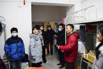 2020年12月30日下午五点,西北工业大学副校长张卫红老师、机电学院党委副书记(主持工作)刘朝亚老师、机电学院党委副书记刘平老师和机电学院辅导员冯永涛老师前往七号学生公寓楼看望学生。