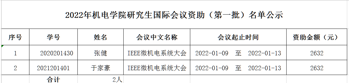 2022年机电学院研究生国际会议资助(第一批)名单公示