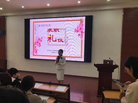 出席本次活动的老师有学生职业发展指导服务中心朱莉老师,同时讲座还特别邀请了ACI国际注册高级礼仪培训师、国家注册校园礼仪培训师、腾讯城市力量区域影响力盛典公益人物、西安广播电视台FM104.3《人在职场》嘉宾主持马晶老师。