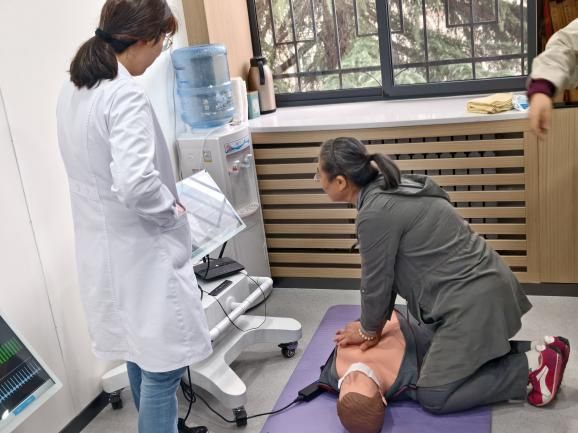 培训内容紧扣日常生活与校园环境中可能遇到的紧急情况,涵盖了心肺复苏(CPR)、自动体外除颤器(AED)使用、海姆立克急救法、创伤包扎等多项实用急救技能。校医院专业医护人员担任主讲和指导,确保了培训的专业性和科学性。