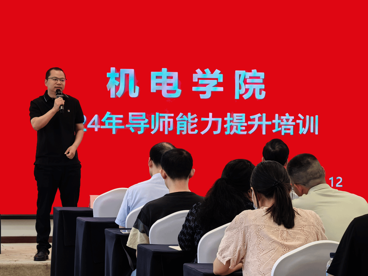会议由机电学院党委书记张映峰主持,研究生院常务副院长朱继宏、机电学院副院长汪焰恩及学院全体中青年研究生导师参加本次培训。