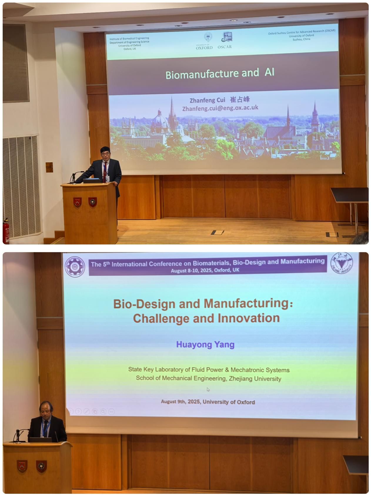 第五届生物设计与制造及生物材料国际会议由浙江大学和《生物设计与制造》期刊主办、牛津大学协办,由中国工程院外籍院士、英国皇家工程院院士、牛津大学化学工程讲席教授,牛津大学Donald Pollock终身教授Zhanfeng Cui和中国工程院院士浙江大学机械工程学院杨华勇教授共同担任主席。