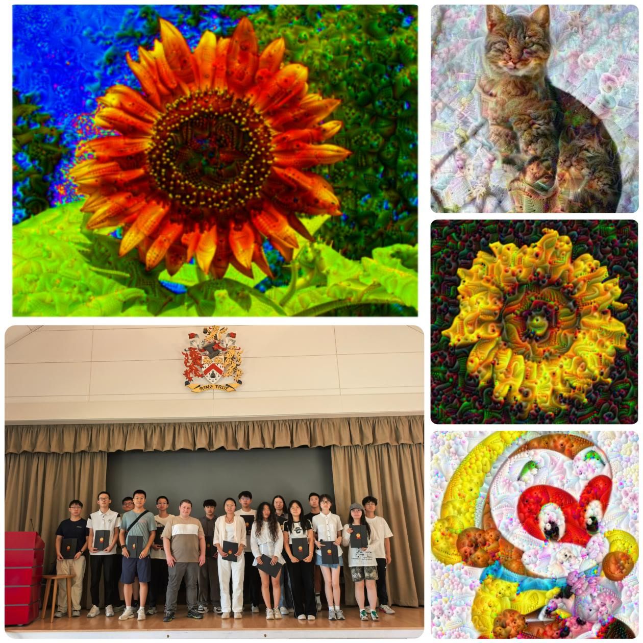 聚焦人工智能前沿课程:在剑桥,同学们在Professor Lane与Dr. Svoboda的讲解下,系统学习了人工智能领域的核心知识。课程围绕深度学习,深入讲解了基础模型、激活函数、序列处理、卷积神经网络等内容。为强化实践,Dr. Svoboda特别设置了以 “A Deep Dive Into the Deep Futures” 为主题的小组实践环节。同学们亲手实现“DeepDream” 技术,修改图像以增强神经网络识别的图案,不仅直观理解了深度学习的底层逻辑,更锻炼了技术实操与团队协作能力,完成了从“被动聆听”到“主动探索”的转变。