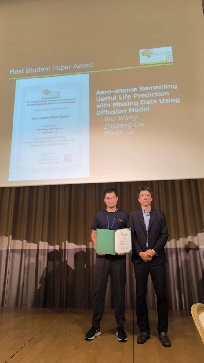在此次会议上,机电学院蔡志强教授课题组荣获了APARM 2024最佳学生论文奖。获奖论文题为《Aero-engine Remaining Useful Life Prediction with Missing Data Using Diffusion Model》。该论文聚焦于航空发动机状态监测数据缺失对深度学习模型预测精度的影响,提出了一种名为DiffFMD的创新数据填充方法。通过有效填补数据缺失,这一方法显著提升了剩余使用寿命预测的准确性,展现了该课题组在复杂系统可靠性研究方面的重要进展。