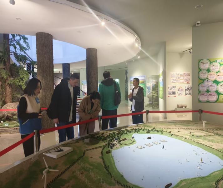 (调研团队在柴窝堡湖国家湿地公园科普馆听取场馆负责人介绍湿地相关情况)