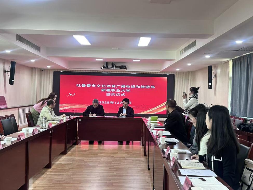 为深化校地合作,推动旅游学科实践教学与地方文旅产业发展深度融合,12月6日,我校党委常委副校长李亮、旅游学院党总支副书记兼副院长谢辉、党总支副书记马俊、副院长王海燕及相关专业教师代表一行9人,前往吐鲁番市文化体育广播电视和旅游局开展合作交流座谈暨合作签约仪式。吐鲁番市文旅局党组书记、副局长朱建江及相关科室负责人出席座谈,双方围绕民宿建设提质、研学旅行开发等核心议题深入交流,最终达成多项合作共识。