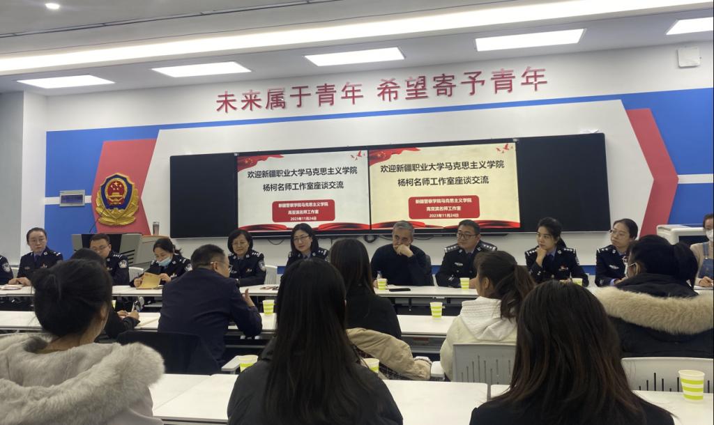 2023年11月24日下午,学院党总支组织全院教职工前往新疆警察学院开展主题党日活动,并与马克思主义学院的教师们就如何做好科研进行了深入交流。