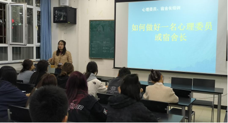 为进一步加强学院心理健康教育队伍建设,提高学生的心理专业知识和技能,增强朋辈支持力量,学院心理辅导员王赛丽于2024年10月9日面向2024级心理委员、宿舍长开展心理健康专题培训。培训内容包括《心理委员、宿舍长的职责》《大学生常见心理问题的识别》《朋辈心理辅导技巧》,旨在通过进行培训,增强大学生对心理健康问题的重视度与识别心理问题的能力,对班级、宿舍内有问题的同学能做到早发现、早上报。